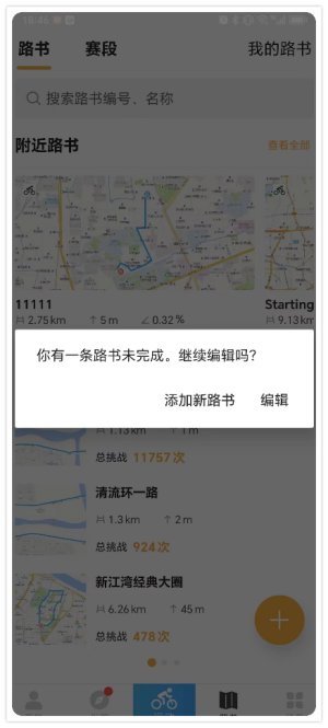 如果你在制作路书期间意外退出了app,本地会缓存,下次再进入会提醒。