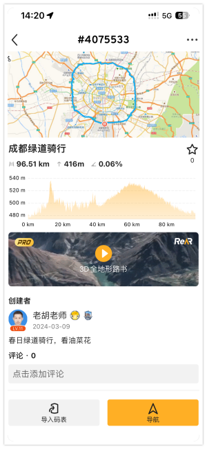 当生成好路线,可以点击右边的【预览】,即可看到全程的海拔图和爬坡路段提醒。发现如果有规划不合理的时候,可以返回修改完善。