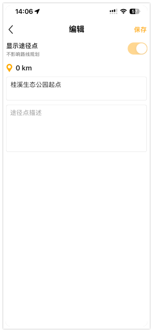 如果你对自动生成的途径点名称不是很满意,可以通过编辑选项,来编辑名称和描述信息,也可以自啊这里设置是否在地图上显示这个途径点。未来我们还将支持富文本格式的途径点描述以及,支持途径点的功能类型添加。