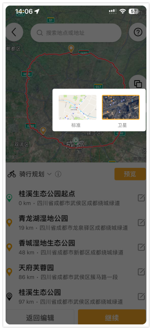 我们提供了多种地图工具,包括图层切换,全局预览,方便检查规划路线。未来我们也将会把热力图图层上线,为用户提供大数据骑行路线底图的支持。